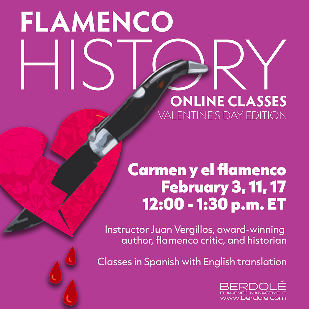 Award-winning author, flamenco critic, and historian Juan Vergillos explains how Bizet’s Carmen catapulted flamenco into the limelight in the 19th century. And, he guides us through the history of flamenco with clips and photos of many of the interpretations of Bizet’s Carmen during the last 150 years.